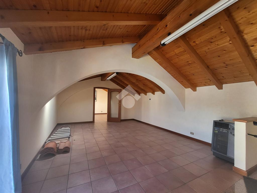 Immobile indipendente, accatastato come C2 - Deposito Magazzino. Ideale per lo stoccaggio di merci. Al piano terra locale open space con all'interno scala a chiocciola per accedere al piano superiore rifinito e con travi a vista. Piazzale privato su 2 lati di circa 70 mq. NO immobile residenziale.